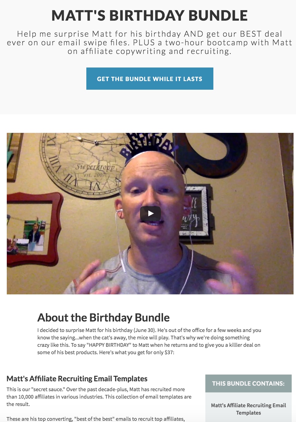 Sales Page: mattmcwilliams.com/birthday (since this sale is passed, the links to purchase are not live…)